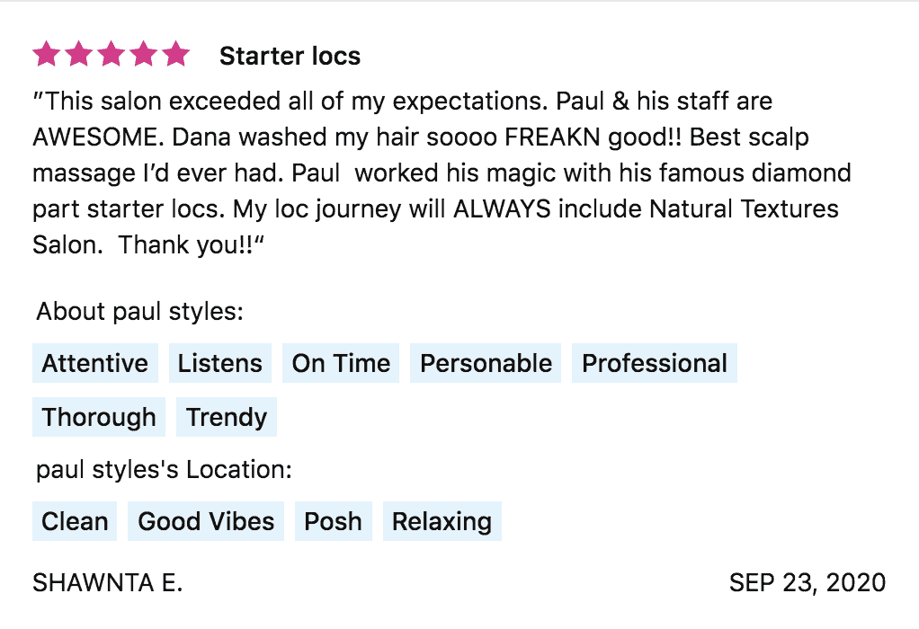 Replying to positive reviews presents a great opportunity to build trust and establish your credibility as a stylist. In your response, feel free to give recommendations about other services or advice on how clients can care for their look outside of the salon. This reinforces that you are an expert and you care about your client’s needs.