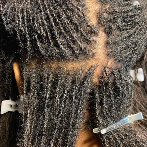For Sisterlocks, it is essential to find a certified Sisterlocks consultant or trainee to install your locs by visiting the Sisterlocks website. When installing Sisterlocks, Harris says the process can take from 12 hours to even three days. Sisterlocks consultants and trainees receive 35 hours of training, and to become a consultant, you will have to perform three full installations. Selecting your loctician on the website ensures proper installation to set your journey up for success.