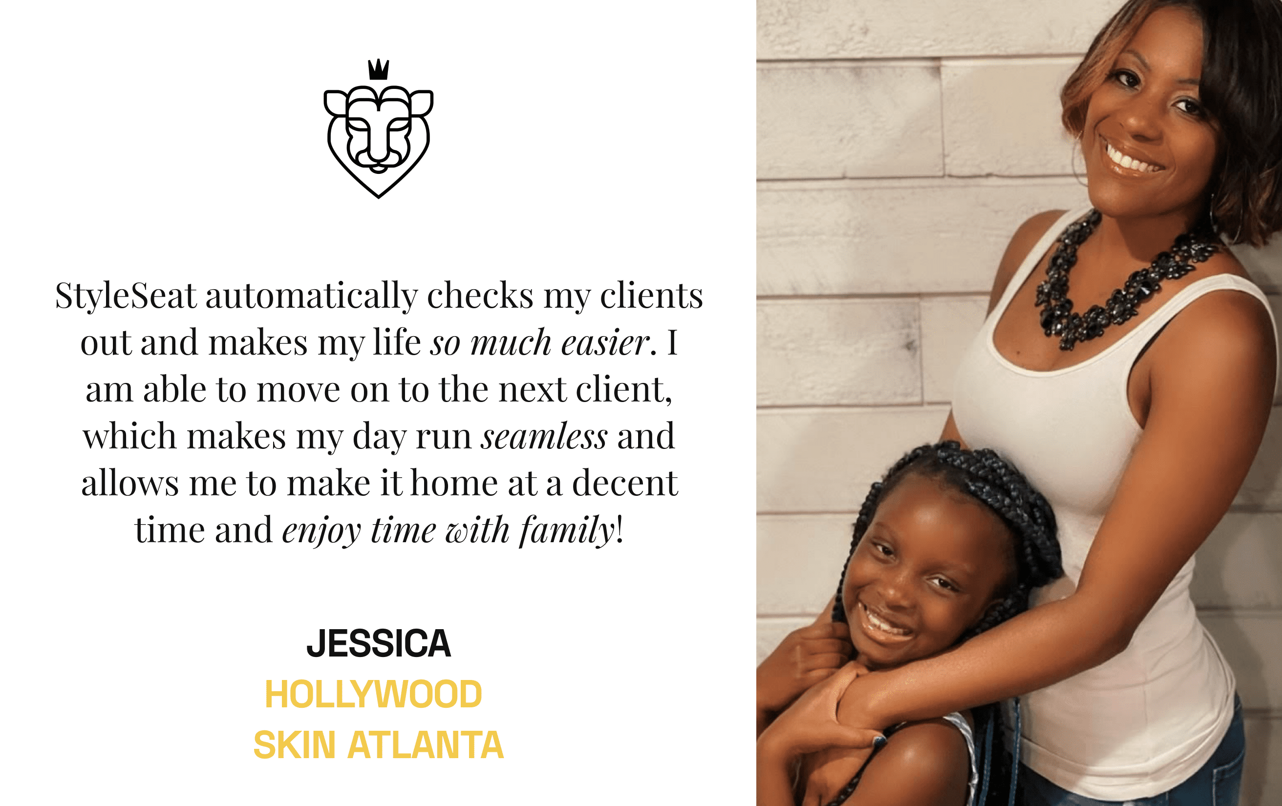 StyleSeat has improved my work, life balance, financial freedom, and scheduling easily by making it a “one-stop shop.” I love that clients can book on their own and the touch-less pay feature is incredible. I do not have to worry about spending that additional time at the end of the appointment to collect money. StyleSeat automatically checks my clients out and makes my life so much easier. I am able to move on to the next client, which makes my day run seamless and allows me to make it home at a decent time and enjoy time with family!