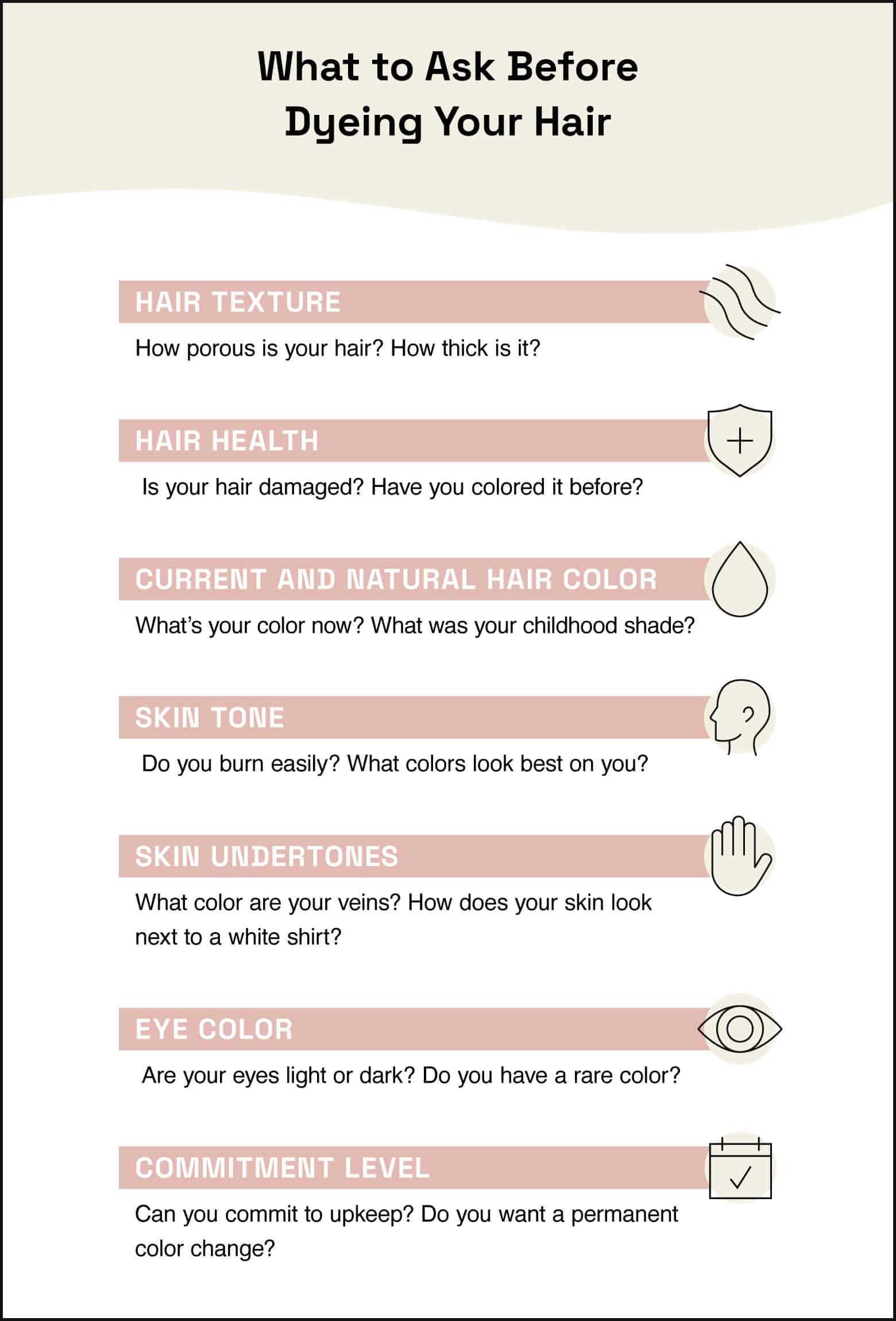 Whether you’re booking an appointment with a hair colorist or you’re planning to color your hair at home, you should take all of the same factors into consideration. Figure out these details about yourself before you even think about picking a new hair color.