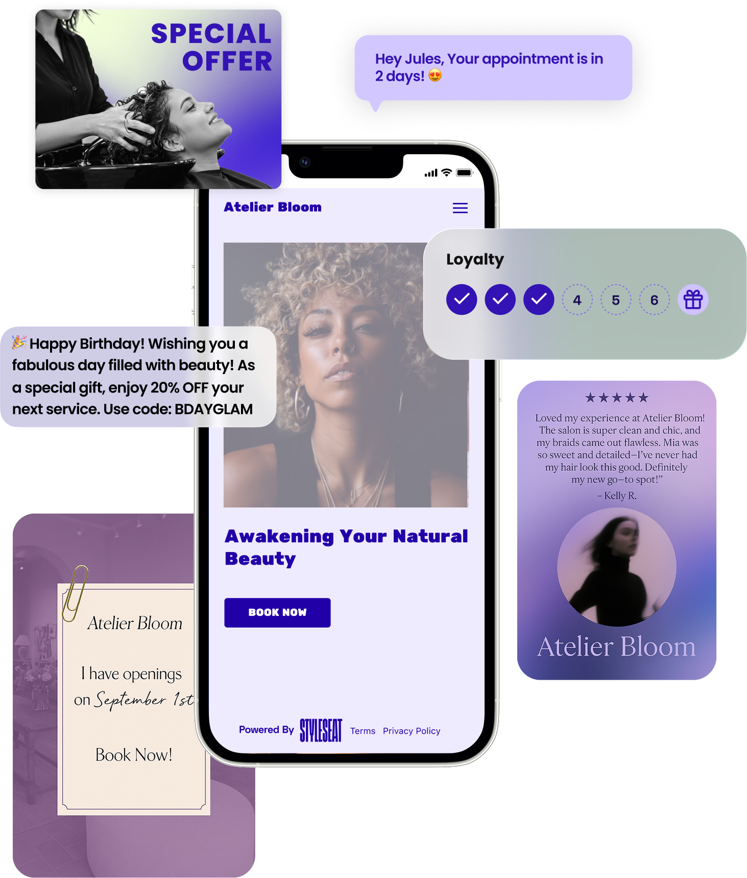 Unlike other salon management software that just helps you stay organized, StyleSeat actively grows your business. With our New Client Connection, advanced marketing tools, AI-powered booking, and automated rebooking reminders, you’ll earn more money with less effort.